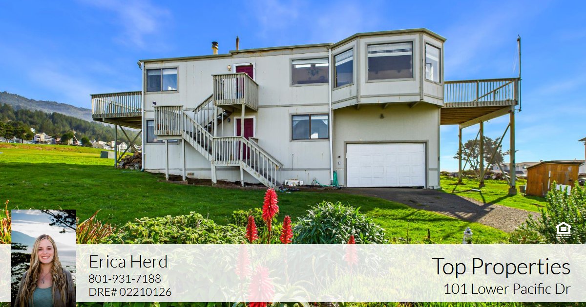 Wake up to the sound of the ocean and fall asleep with spectacular sunset views in this unique split-entry coastal home. Located just off the ocean front drive on a quiet cul-de-sac, directly across from Abalone Point Park, this 3 Bed 2 bath residence offers a rare front-to-back setting with the Pacific Ocean in your front yard and the golf course and airstrip in the backyard. Enjoy watching the planes come and go & the sound of waves. The split-level design provides a functional layout with two defined living spaces, abundant natural light, and seamless indoor-outdoor flow to take full advantage of the surroundings. Set in a truly one-of-a-kind coastal community, this property blends dramatic scenery, fresh ocean air, and immediate access to recreation—delivering a lifestyle that's hard to match.