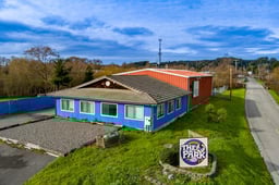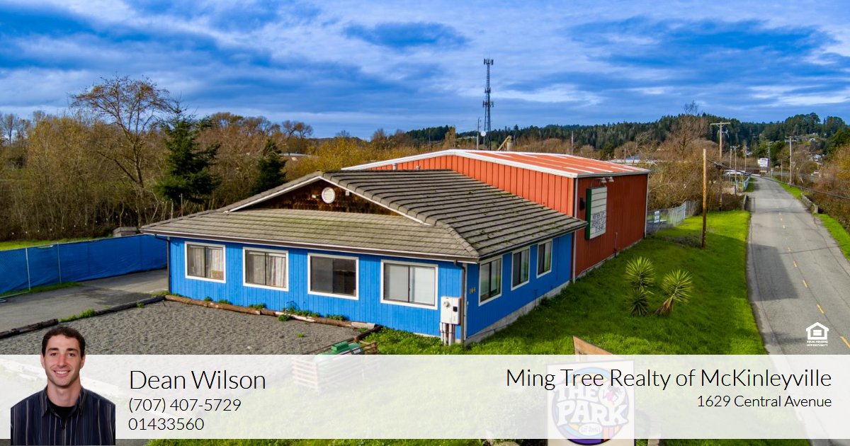 Commercial space with easy access from Dinsmore Dr., and strong visibility from Highway 101. Approximately 1,600 sq ft of office or retail space in front, and roughly 2,800 sq ft of warehouse space in back. Both areas have their own bathroom, allowing separation between potential customer-facing and operational uses. The warehouse is divided into two sections, each easily accessed by its own large rolling overhead door. There are skylights and floor drains, adding to the functionality. The parcel's roughly 1 acre, and it's largely fenced from the street, offering space to more securely store equipment or park vehicles. Showings are by appointment only. Please do not disturb the tenant. Buyers should verify allowable uses in relation to their needs, with the City of Fortuna.