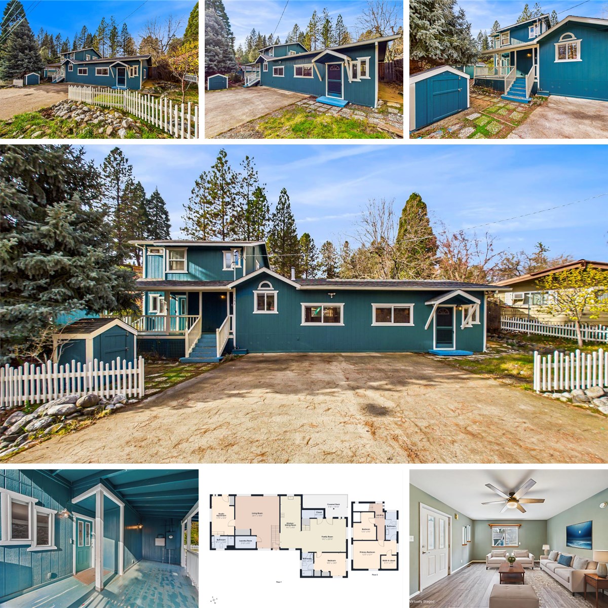Welcome to a thoughtfully cared for property with versatile spaces and a highly convenient Weaverville location, close to the hospital and historic downtown. The main level offers two bedrooms, two bathrooms, and two separate living areas, with a covered front porch entry. Upstairs are two additional bedrooms and a third bathroom. One of the downstairs bedrooms has a separate exterior entrance (in addition to the interior) and has previously been used as a successful rental/ADU. It includes plumbing for a sink, electrical for a stove and refrigerator, and a full bathroom, ideal for guest quarters, a home office, or independent living space. Recent upgrades include a 2016 roof, updated electrical panel and outlets, an EV charging outlet, new mini-splits upstairs, and fresh exterior paint. The fenced backyard features a native field sedge lawn, a patio, garden beds, a small greenhouse, tree fort, and a hot tub, creating a private and usable outdoor space. Ample storage is available in the newer outbuildings. Pre-inspection reports on hand, schedule a showing and see all the potential this property offers!