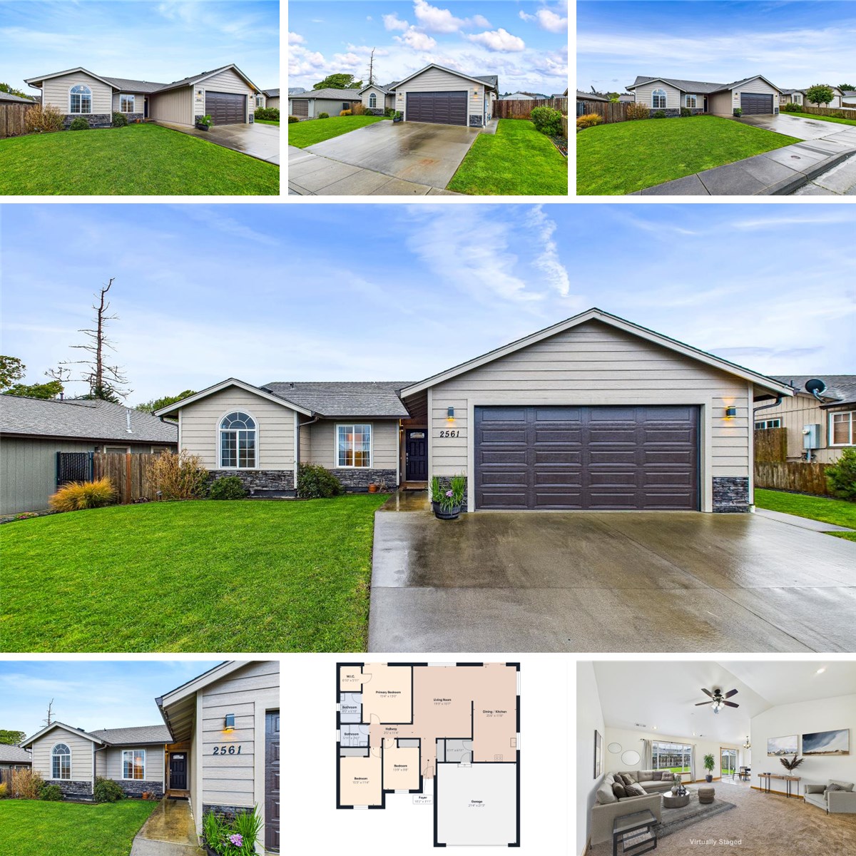 Welcome to this light and bright 1,485 sq. ft. home, perfectly designed for comfort and convenience. With vaulted ceilings that create an open and airy feel, this home is a true retreat. The primary bedroom features an en-suite bathroom and a sliding glass door that opens directly to the spacious backyard, offering a peaceful escape right outside your door.Situated at the end of a quiet road, this home provides privacy while still being conveniently located near schools and shopping. The large, fully fenced backyard is perfect for entertaining, gardening, or enjoying time with pets. The double car garage offers plenty of space for parking and storage, and with no steps throughout the home, accessibility is effortless.