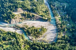 0 Golden Gate Drive| Off the Grid and Off the Beaten Path -- Literally This isn't just a fixer--it's an adventure. Nestled on 0.37 acres along the river, this 1-bedroom, 1,240 sq ft cabin built in 1939 is accessible only by boat or by fording the river, making it one of the most truly secluded properties in Humboldt County. Aerial photos tell the story best: your parcel sits in a lush, tree-lined oasis wrapped by the river on all sides, a world completely apart from the noise of modern life. The cabin features a corrugated metal roof and covered front porch, set among mature timber and open green space with the constant soundtrack of moving water just steps away. River water serves as the on-site water source, keeping you connected to the land in the most elemental way. Whether you're